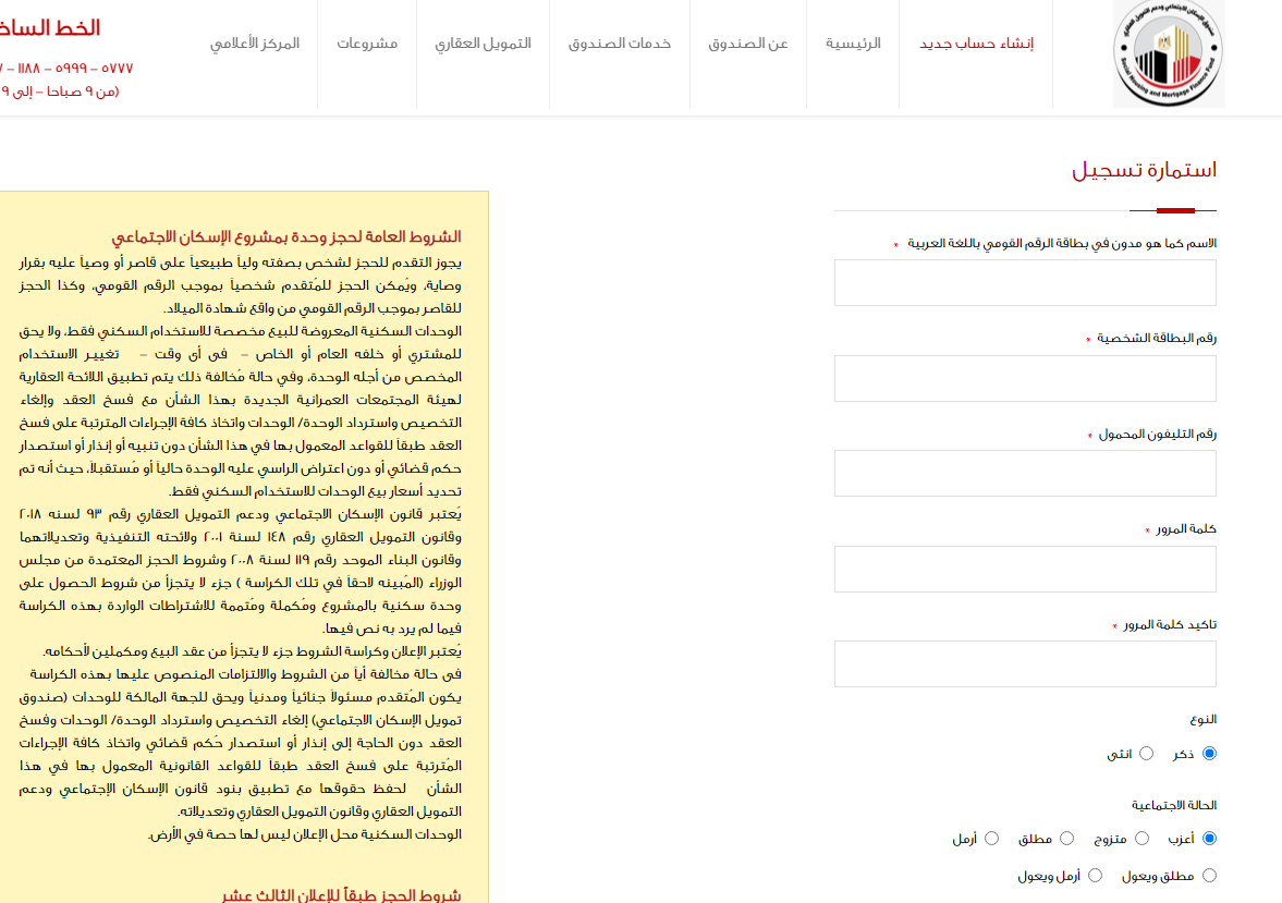 - في البداية الدخول على موقع منصة الإسكان الاجتماعي المصري.