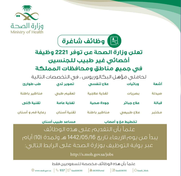 وزارة الصحة الوظائف الجديدة