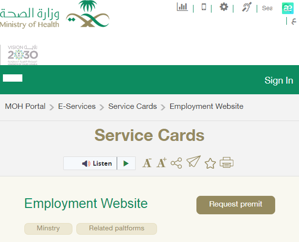 - الآن يتم نقل المواطن إلى الصفحة الخاصة مع النقر على بدء الخدمة.