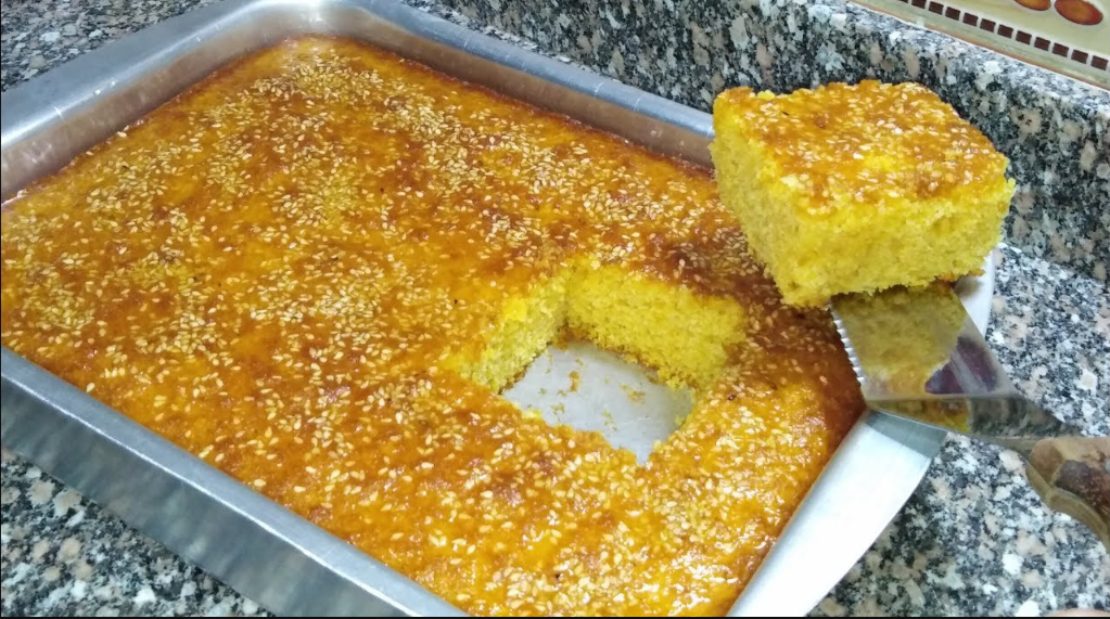 بتتعمل في أقل من 10 دقايق طريقة عمل البسيسة الأصلية الفلاحي بدقيق الذرة بدون بيض
