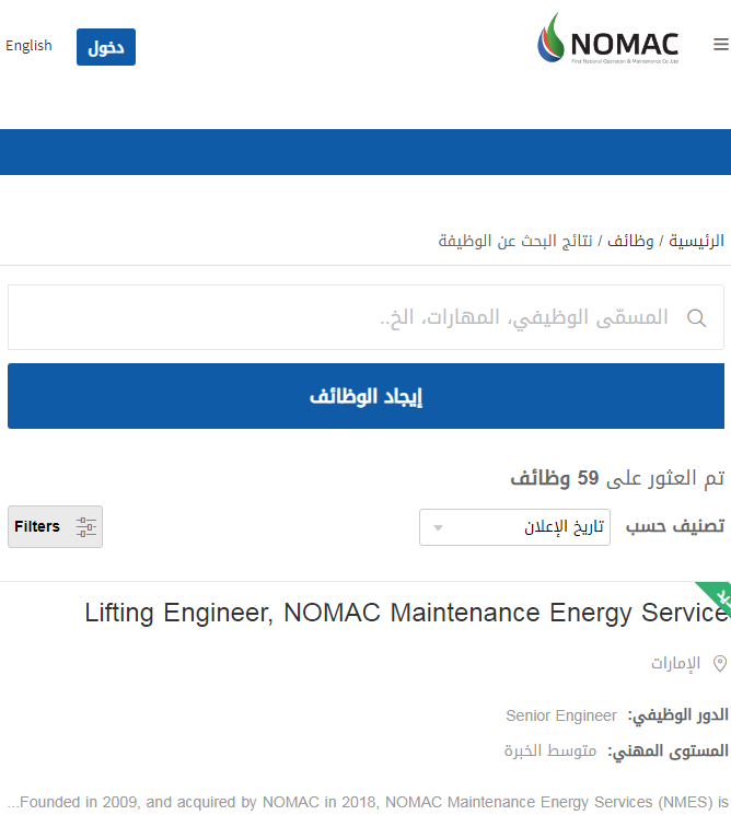 - تظهر على الشاشة الوظائف الشاغرة والمعروضة في شركة نوماك