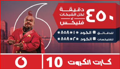 - حال كنت ترغب بالاشتراك في كارت المارد 450 لعملاء شركة فودافون فقط، قد بالاتصال على كود (*1*858*).