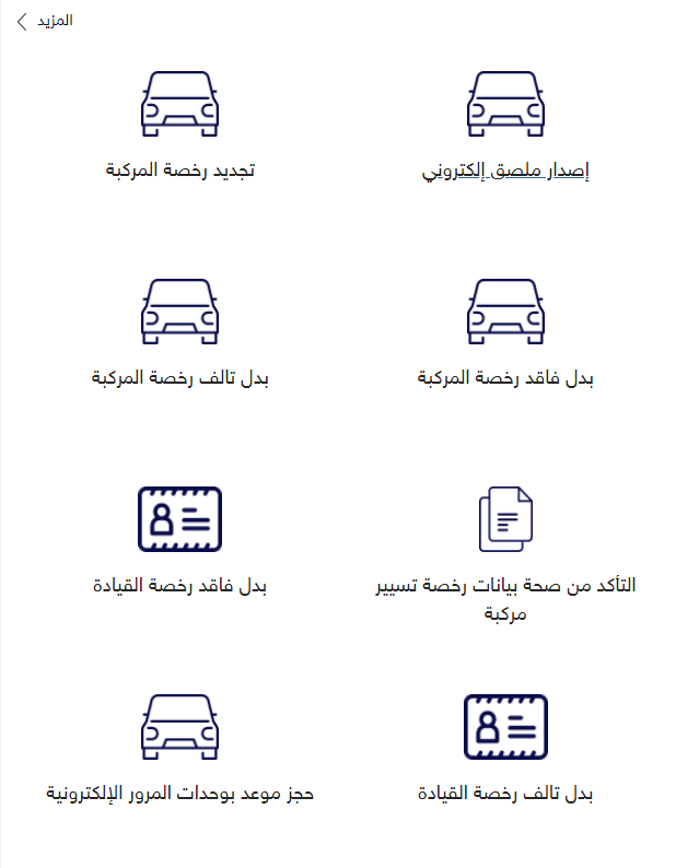 - يتم اختيار الأيقونة الخاصة بخدمات المرور المتاحة في أيقونة مركباتي.