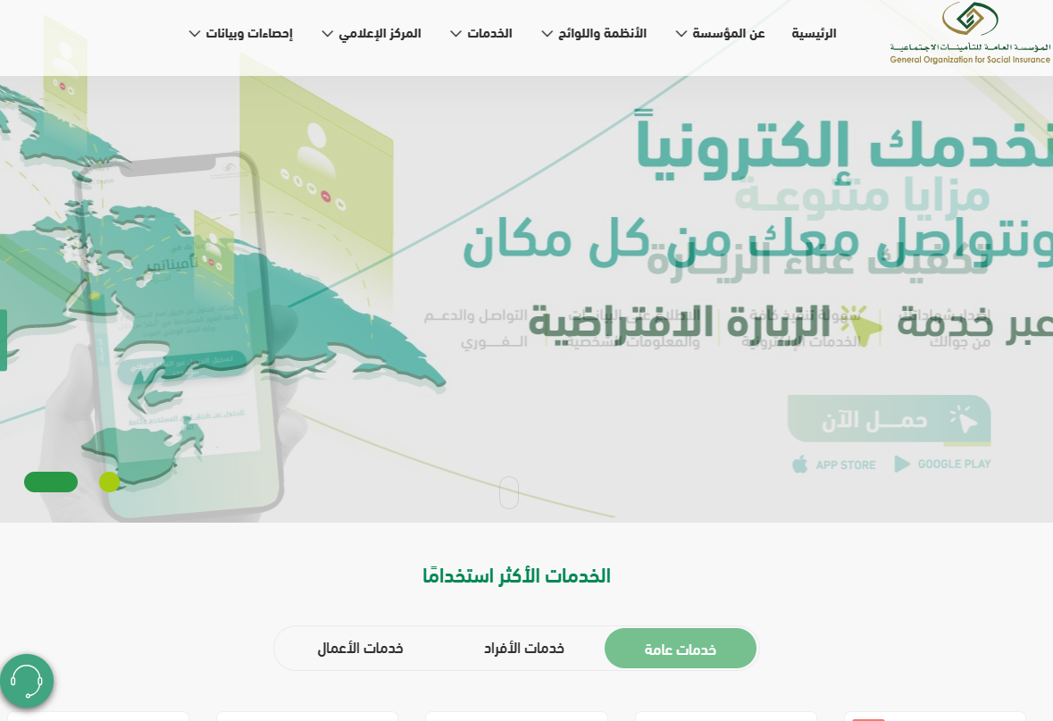 - الدخول إلى الموقع الرسمي لمؤسسة التأمينات الاجتماعية.