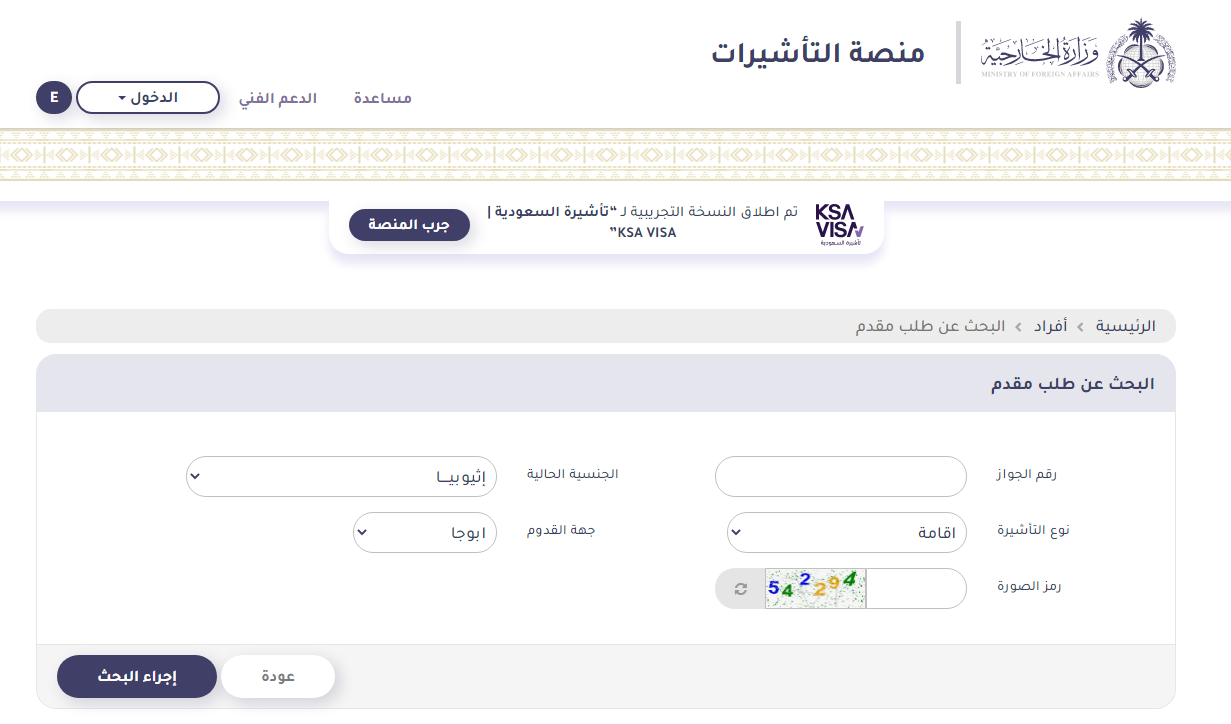 - كتابة البيانات المطلوبة للاستعلام عن طلب التأشيرة وهي رقم الجواز ونوع التأشيرة والرمز المرئي.