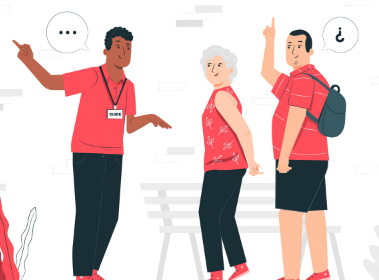 ويقوم بتنظيم برنامج يتم من خلاله التعريف بهذه الأماكن، حيث الأخذ بهم إلى الأماكن التراثية وكذلك المعالم التي لم يسبق لهم التعرف عليها في إحدى الدول الغير مسبوق لهم السفر إليها، ويتولى الكثير من المهام الإرشادية التي لا يمكن أن يقوم بها غيره في البرنامج.
