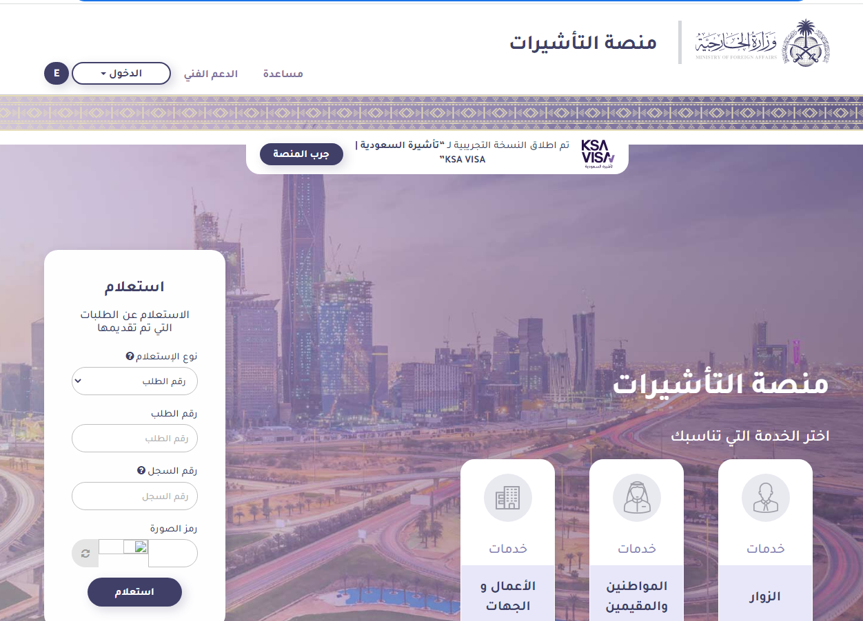 - يدخل الشخص على موقع وزارة الخارجية السعودية منصة التأشيرات.