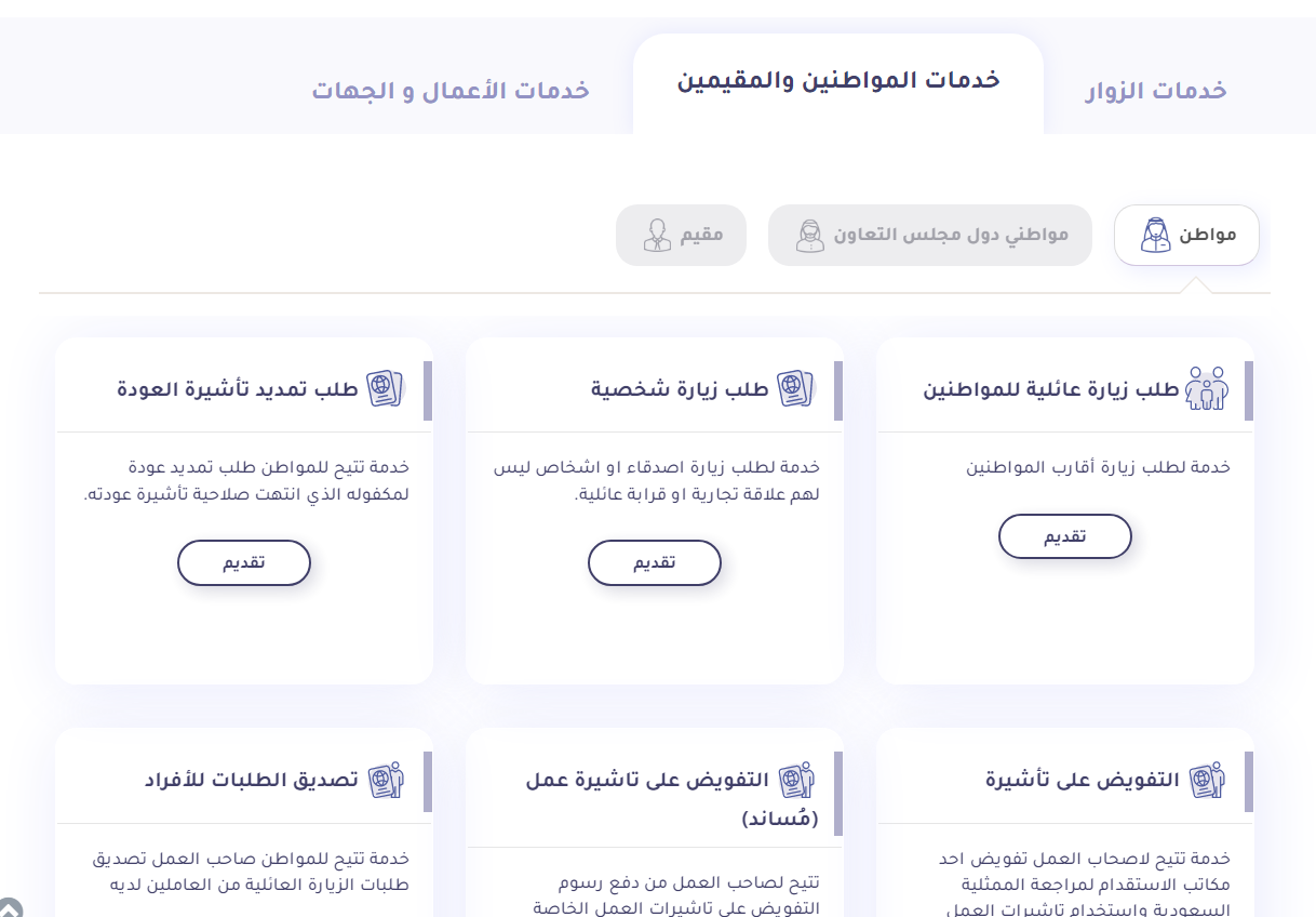 - يختار الشخص خيار خدمات المواطنين والمقيمين من المعروض له.