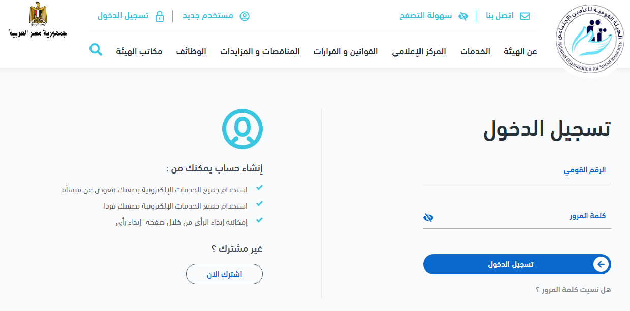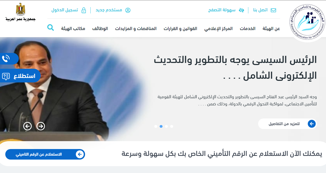 - الدخول إلى الموقع الرسمي للهيئة القومية للتأمين الاجتماعي.