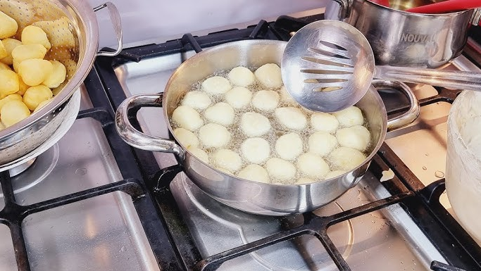 - يتم تشكيل العجينة على شكل كرات في الكثير من الزيت.