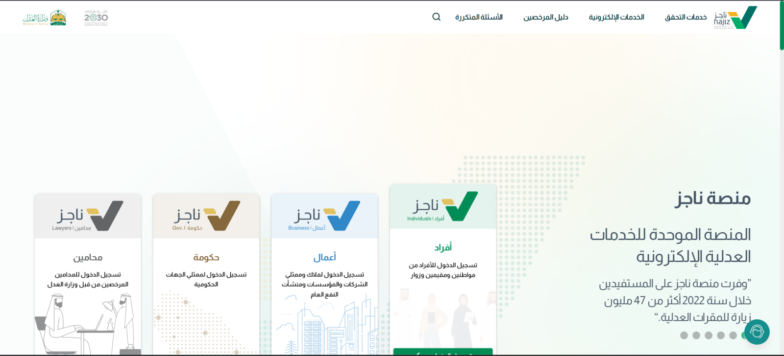 - انتقل إلى الموقع الإلكتروني الرسمي لناجز عبر الرابط المخصص.