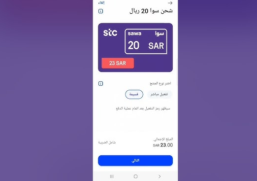 - تحديد خدمة "شحن رصيد سوا" من ضمن الخدمات المعروضة.
