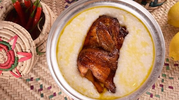 - ثم وضع الدجاج في أطباق التقديم بجانب الأرز.
