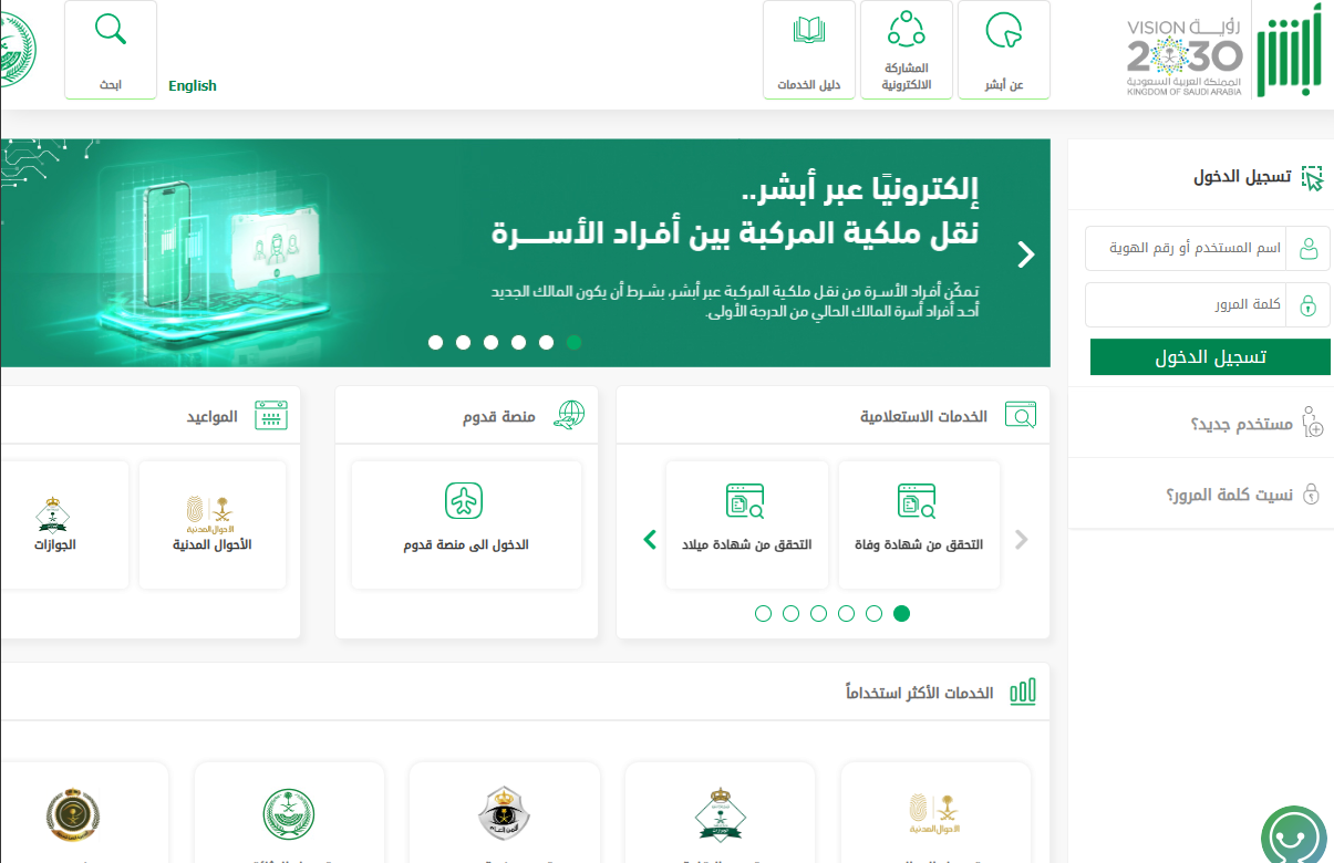 - الوصول إلى الموقع الرسمي لمنصة أبشر.