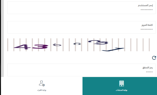 - تسجيل الدخول وذلك من خلال كتابة اسم المستخدم وكلمة المرور فضلًا عن رمز التحقق المرئي.