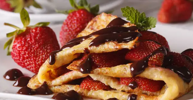 - يتم طهي الكريب لمدة دقيقة على اكل جانب.