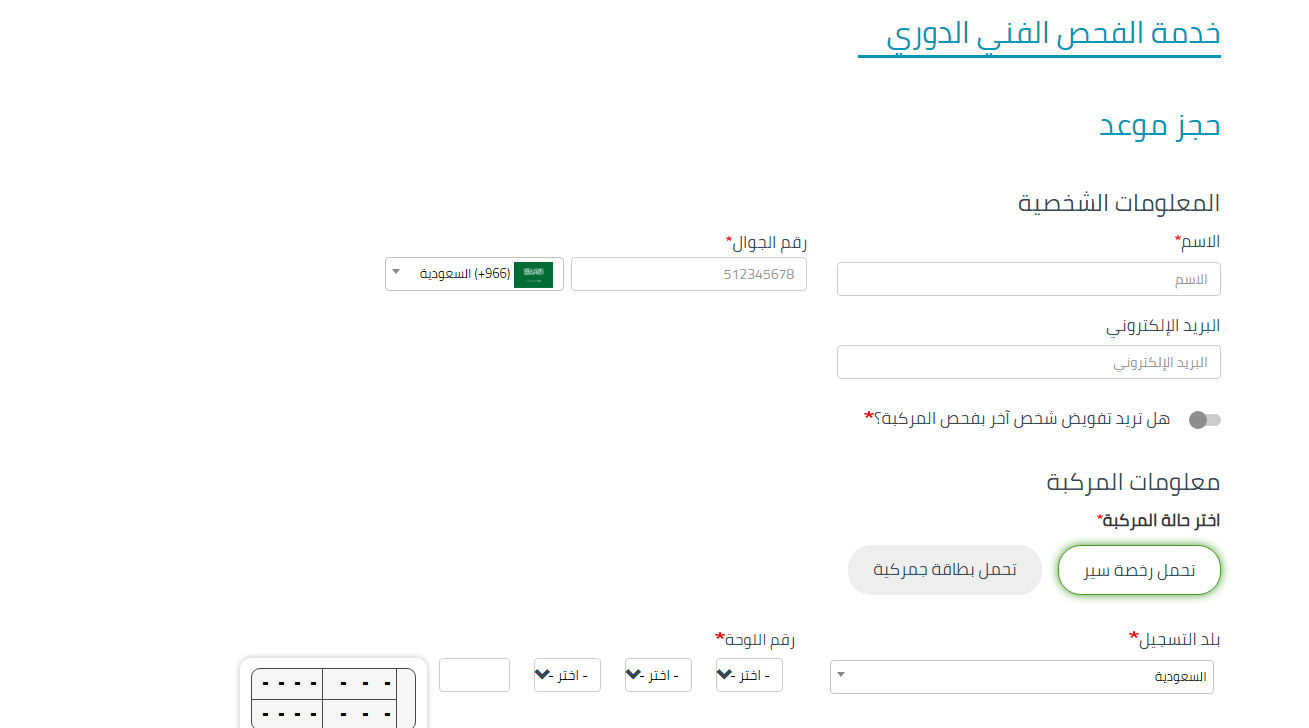 - سوف يُطلب إدخال بعض المعلومات الشخصية، ومعلومات المركبة.