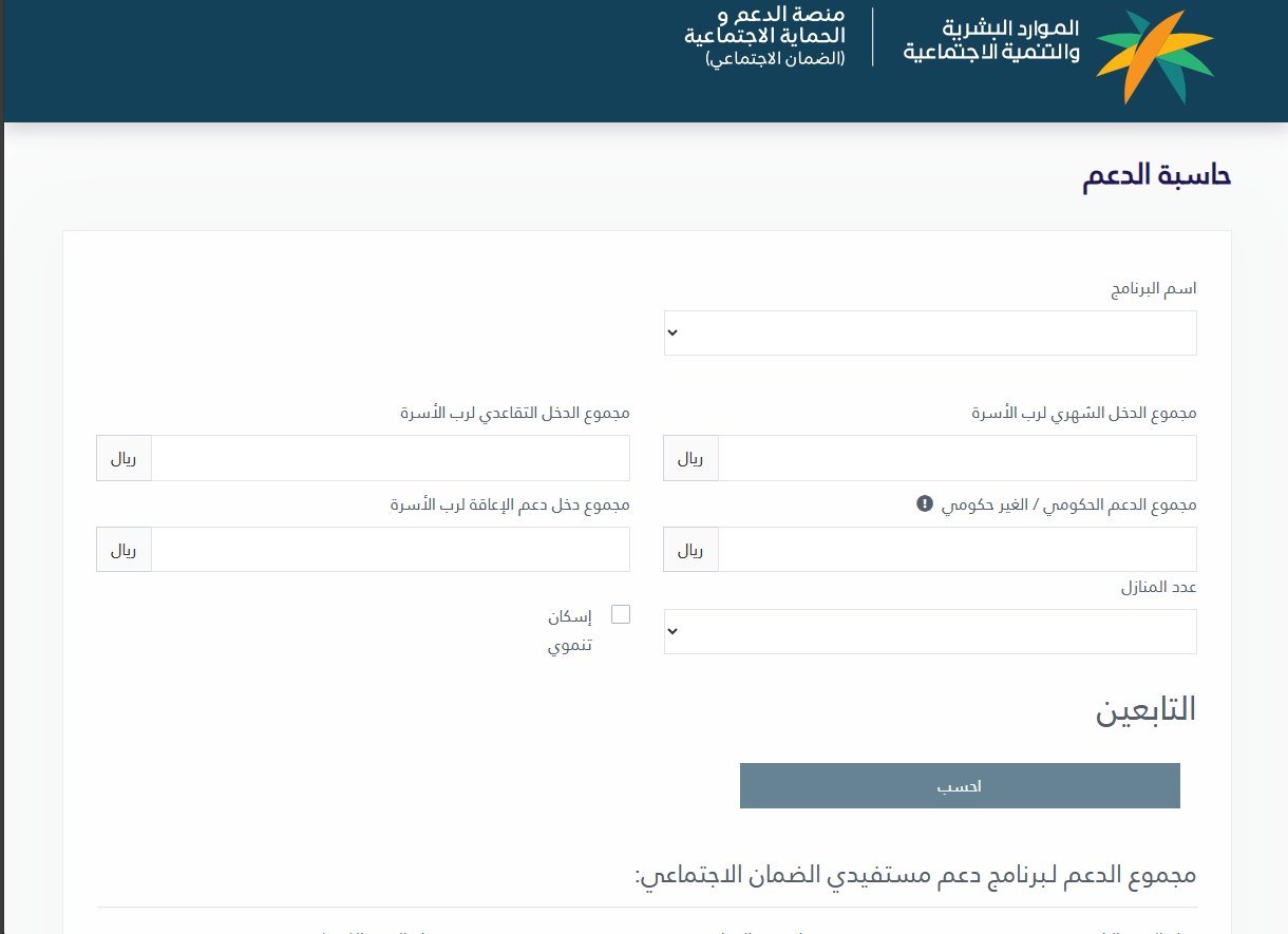 - من خلال الضغط على احسب، سوف تتمكن من التعرف على كافة المعلومات الخاصة بالدعم.