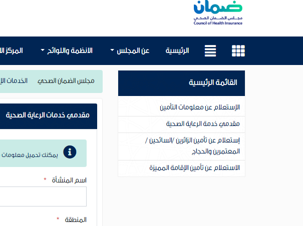 الاستعلام عن معلومات التامين – مجلس الضمان الصحي