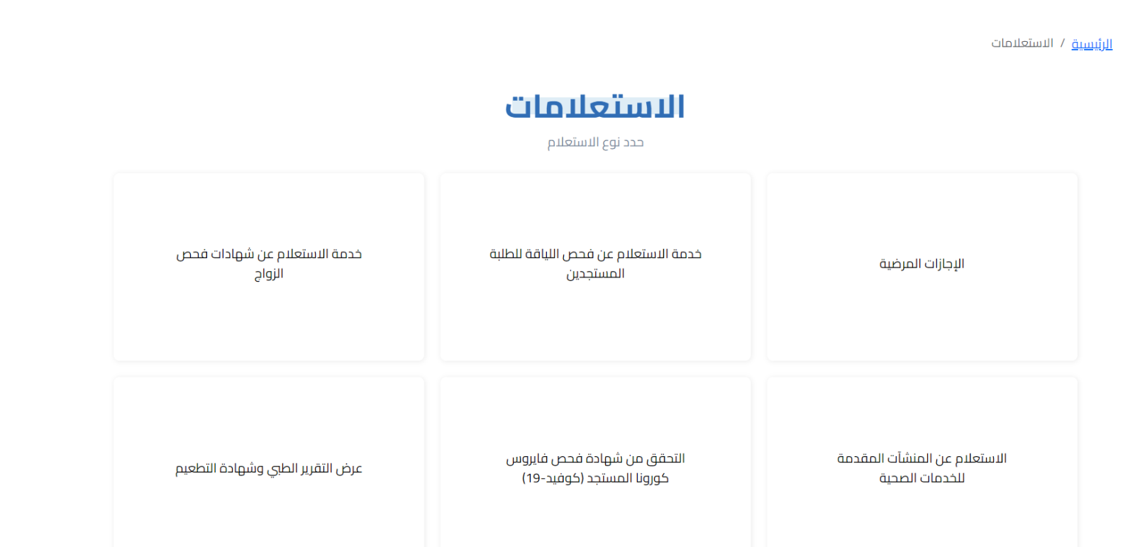 يمكن الاستعلام عن التقارير الطبية الخاصة بفحص الزواج من خلال منصة صحة الإلكترونية، وذلك من خلال الخطوات التالية: