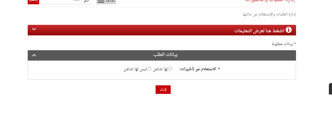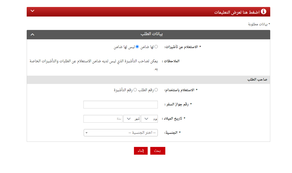 - ينقر على خيار الاستعلام عن التأشيرات.