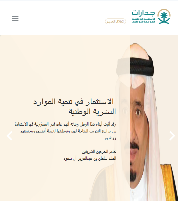 - الدخول على الموقع الإلكتروني الرسمي جدارات.