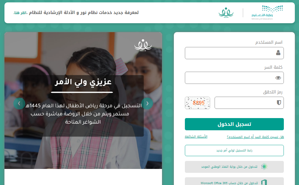 - يتم تسجيل الدخول من خلال إدخال اسم المستخدم وكلمة المرور ورمز التحقق المرئي في الحقول المخصصة لها.