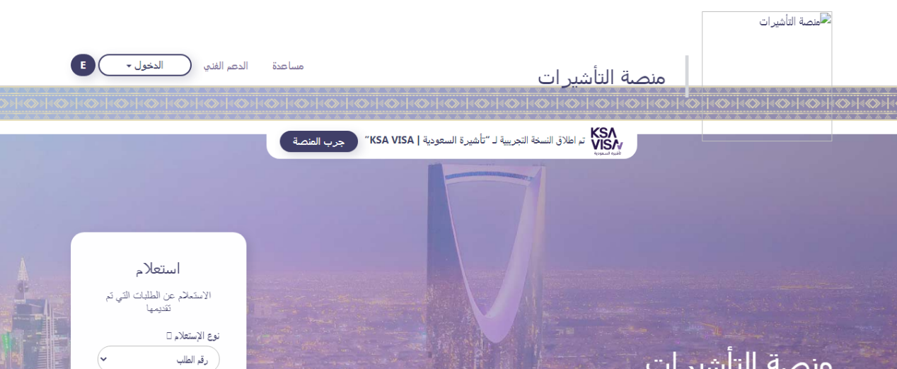 - الذهاب إلى الموقع الإلكتروني منصة التأشيرات.