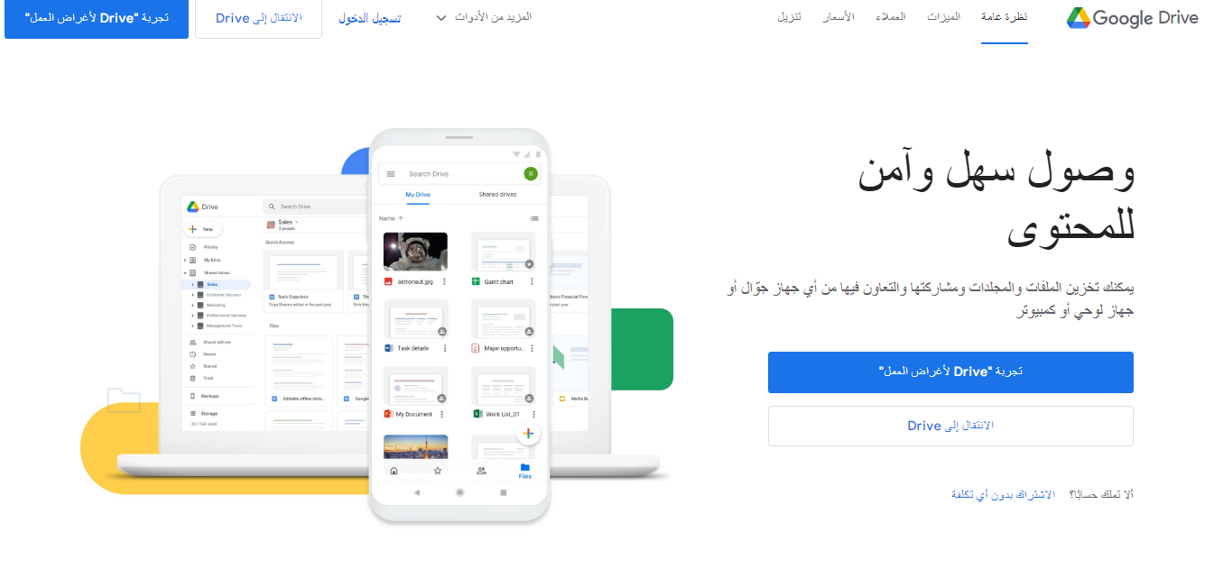 - الانتقال إلى جوجل درايف الموجودة على الهواتف الجوالة أو الحاسب الآلي.