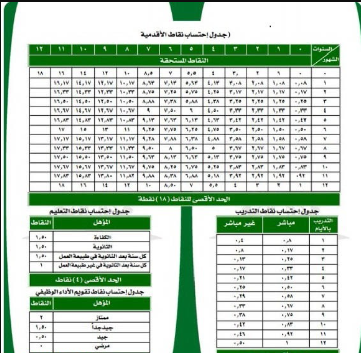يستفسر العديد عن النقاط التي يتم احتسابها للترقية للعسكريين في المملكة العربية السعودية، سنوضح ذلك من خلال الجدول التالي:
