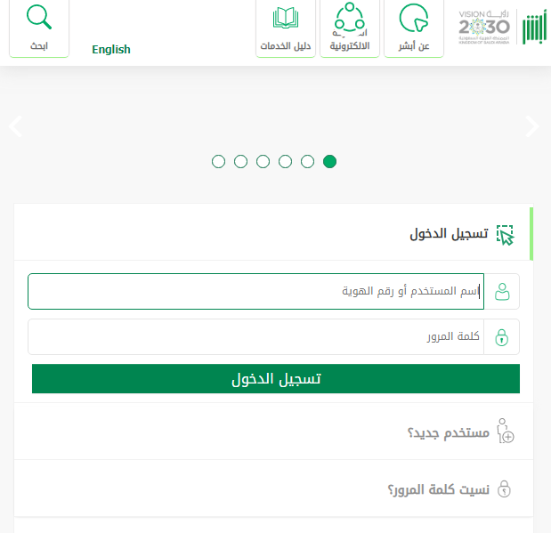 - الولوج إلى الموقع الإلكتروني الرسمي لمنصة أبشر الإلكترونية.