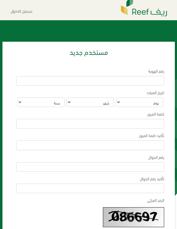 - يتم تعبئة اسم المستخدم ورقم الهوية الوطنية علاوة على تاريخ الميلاد.