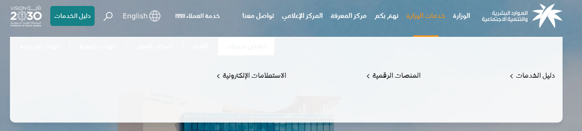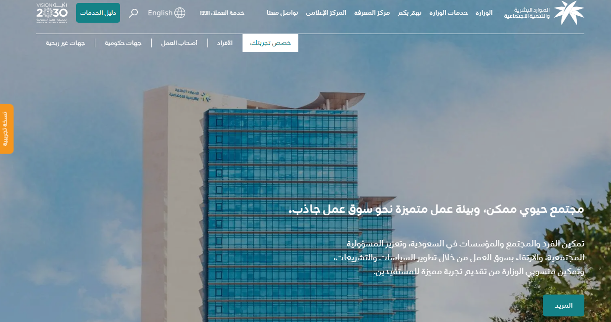 - قم بالدخول بشكل مباشر إلى الموقع الإلكتروني الرسمي لوزارة الموارد البشرية والتنمية الاجتماعية "من هنا".