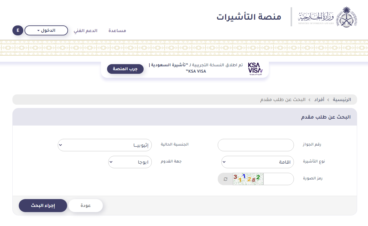 - إدخال رقم الطلب ونوع التأشيرة والجنسية وباقي المعلومات المطلوبة.