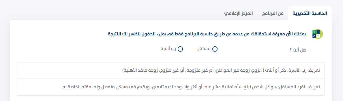 - الدخول إلى رابط حاسبة حساب المواطن التقديرية.