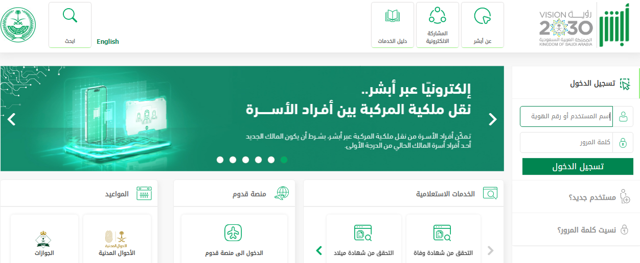 - الدخول إلى منصة أبشر.