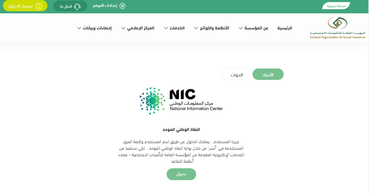 - الدخول إلى موقع مؤسسة التأمينات الاجتماعية.