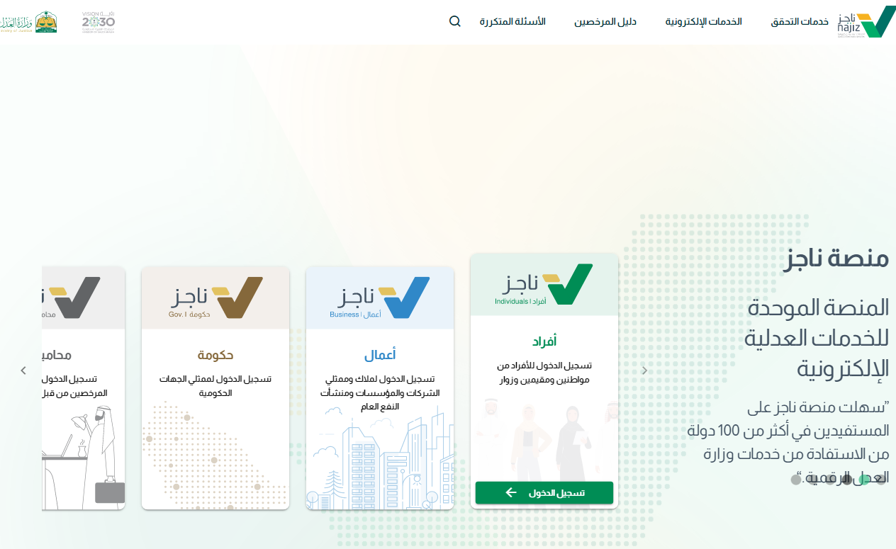 - قم بالدخول بشكل مباشر إلى الموقع الإلكتروني الرسمي لمنصة ناجز "من هنا".
