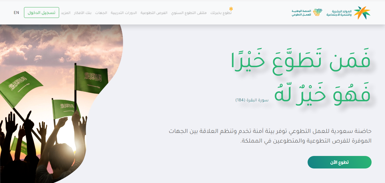 - التوجه إلى الموقع الرسمي الخاص بمنصة التطوع.