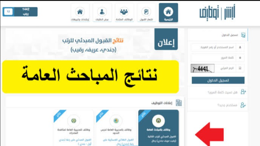 يستطيع الأفراد المتقدمين في المباحث العامة بالمملكة العربية السعودية الاطلاع على النتائج الخاصة بهم من خلال اتباع الخطوات التالية: