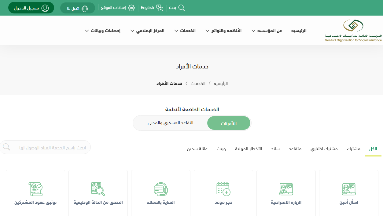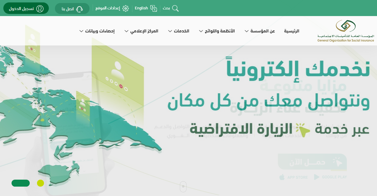 - الدخول إلى الموقع الرسمي الخاص بالمؤسسة العامة للتأمينات الاجتماعية.