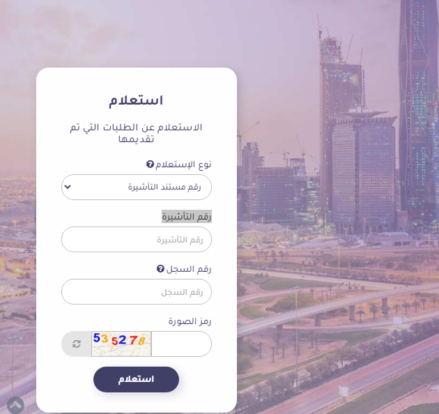 - قم بادخال بيانات الاستعلام (رقم التأشيرة، ورقم السجل، ورمز الصورة).