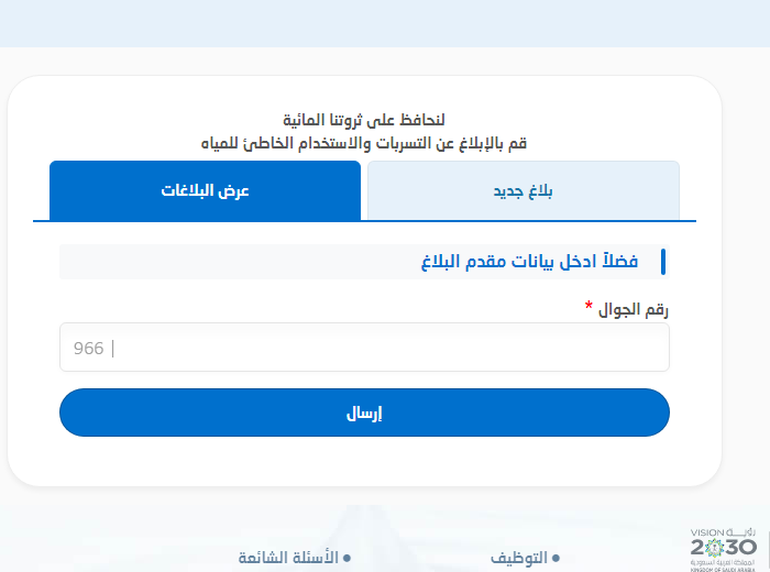 رابط تقديم بلاغ في شركة المياه الوطنية