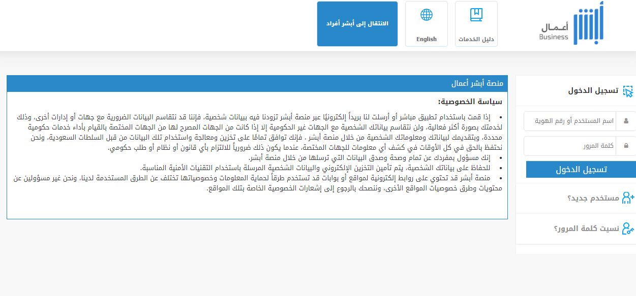- تسجيل الدخول من خلال كتابة رقم الهوية الخاص بصاحب العمل وكلمة المرور.