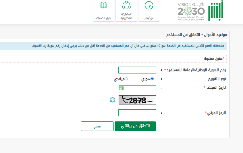 - تحديد تبويب حجز المواعيد "الأحوال المدنية" من واجهة المنصة.