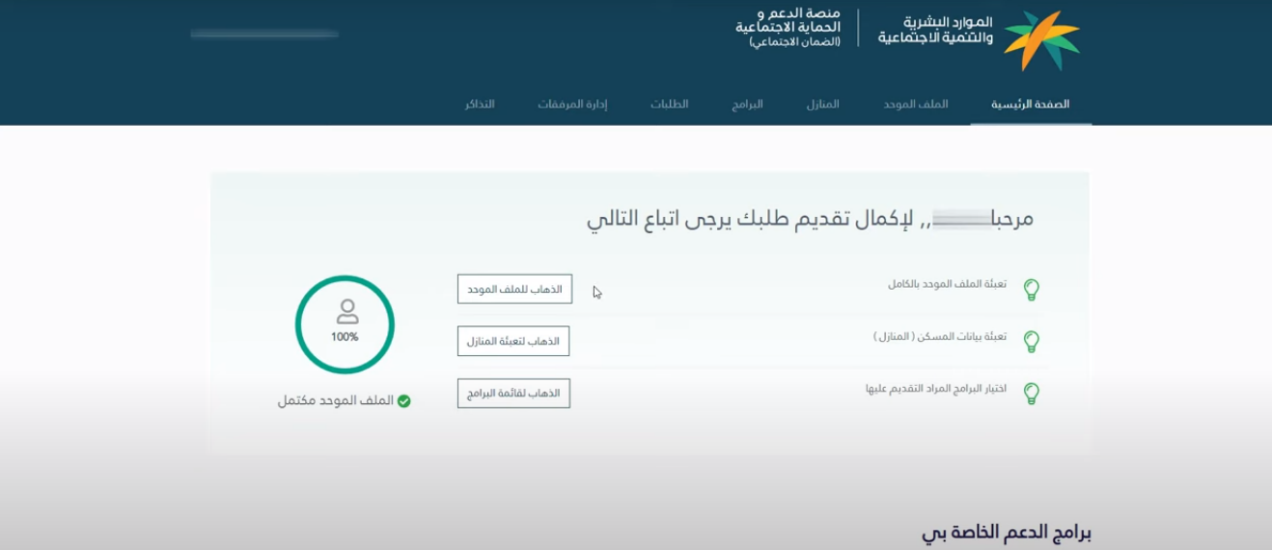 - التوجه إلى منصة الدعم والحماية الاجتماعية.