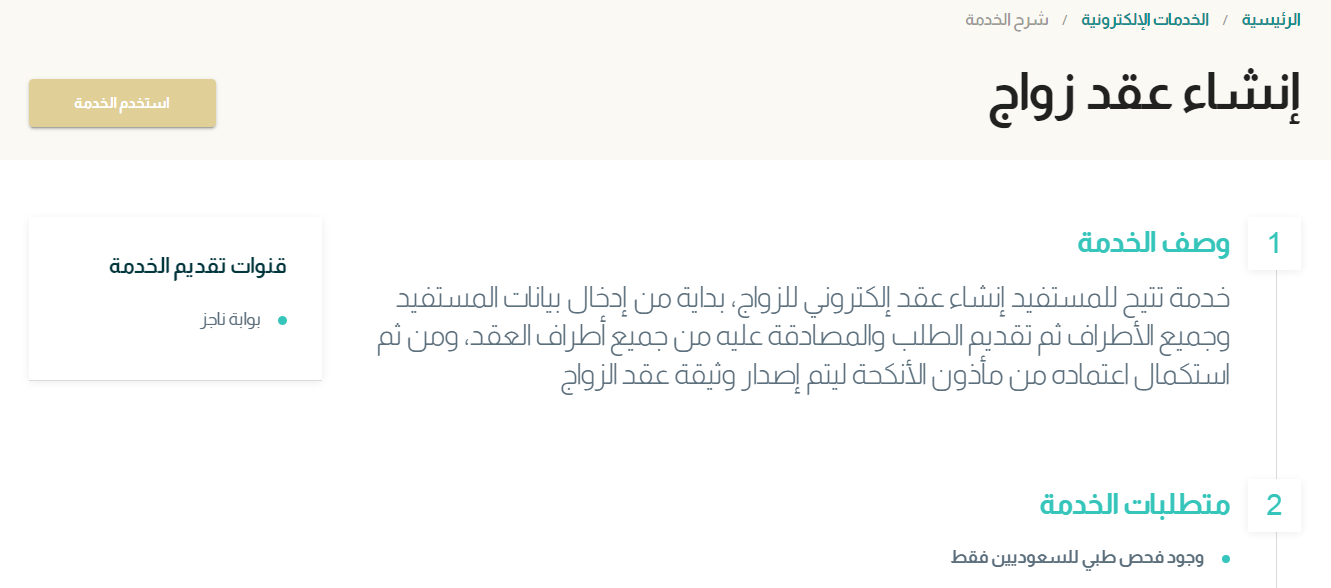 - اختيار خدمة "إنشاء عقد الزواج".