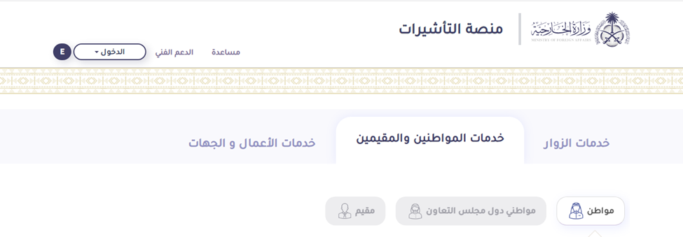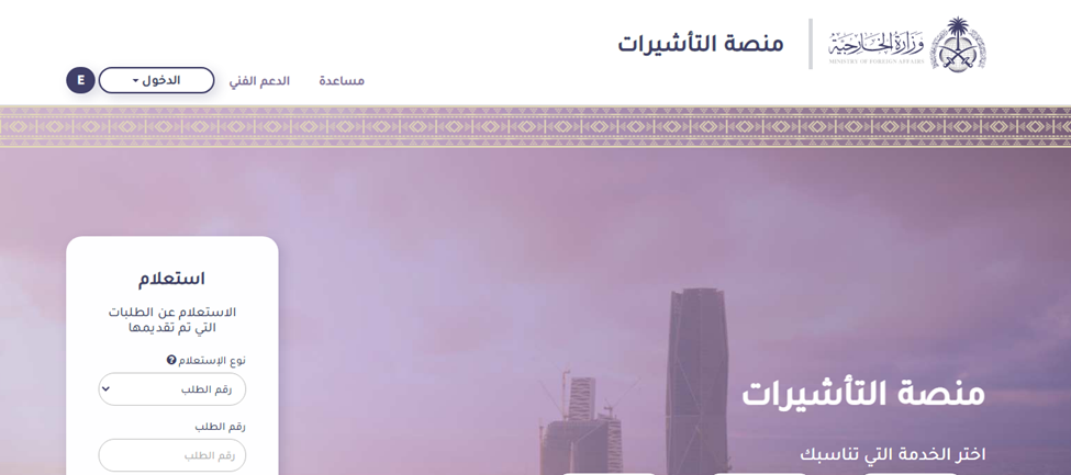 - الدخول إلى منصة التأشيرات الإلكترونية.
