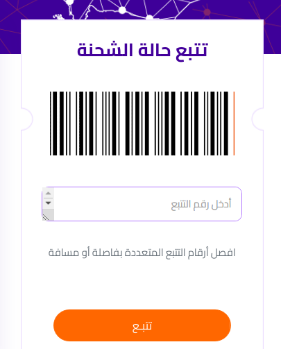 - إدخال رقم التتبع الخاص بالشحنة.