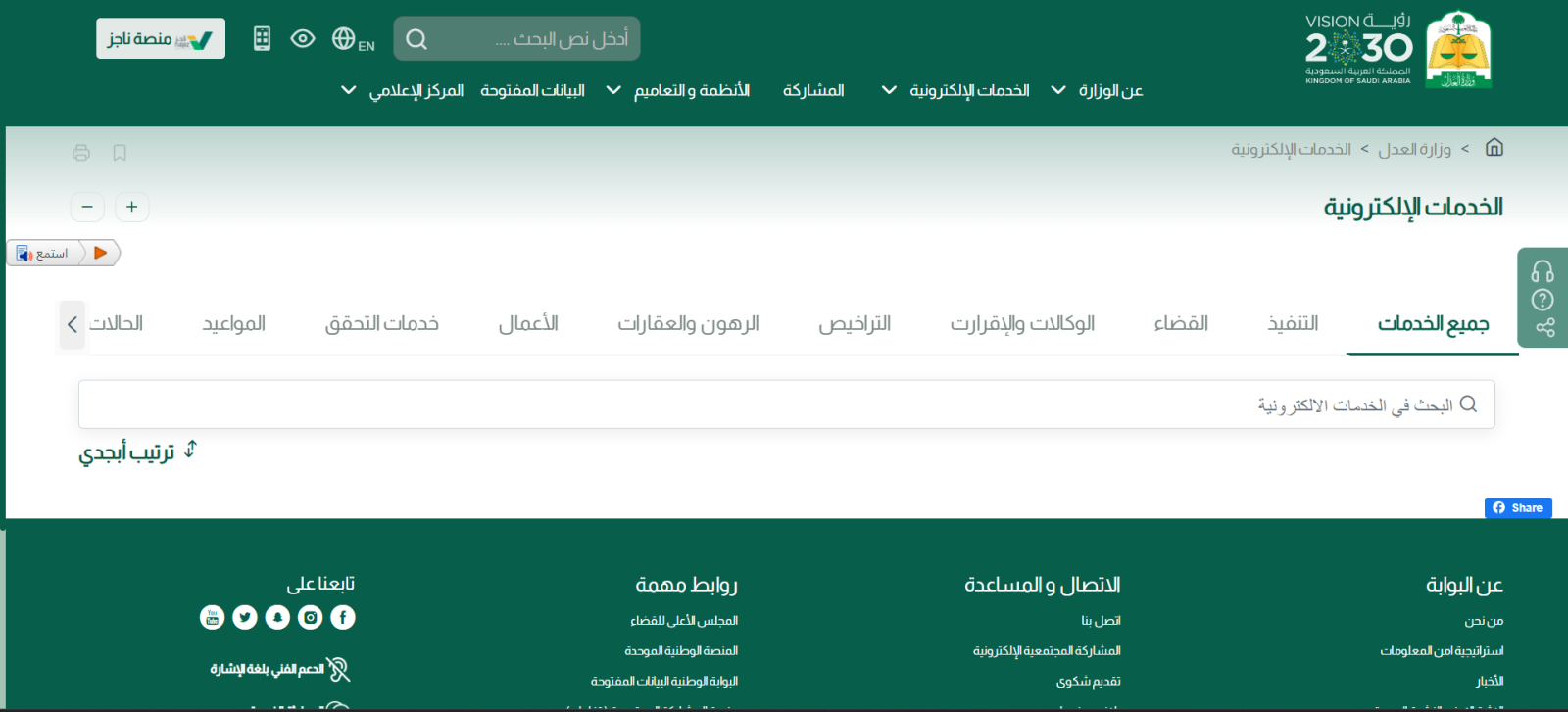 - قم بفتح الموقع الإلكتروني الخاص بـ وزارة العدل والوصول إلى بوابة ناجز مباشرة.